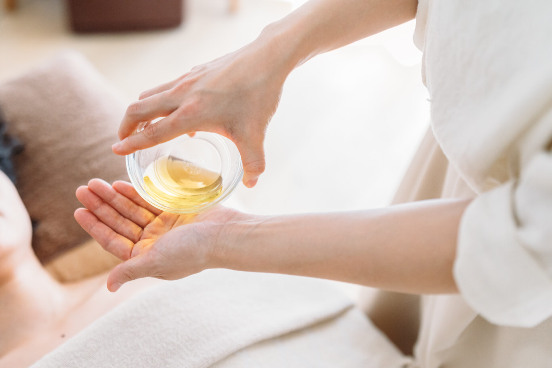 経絡アロマトリートメントはその時の心身の状態に合わせたアロマオイルで温めながらじっくりほぐし、気血を巡らせることで心身のバランスを整えていきます。
